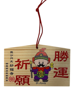 毘沙門天をモチーフにした「びっちゃん」の「勝運絵馬」を特別に進呈させて頂きます。