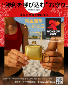 ・縁起物で応援MOVE ON 2026「純金箔革・ミニがま口」
