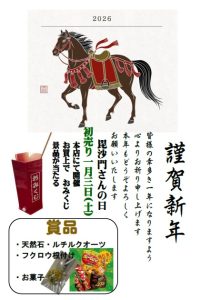◆初売り「毘沙門さんの日」3日(木)セール 営業時間:9時~16時